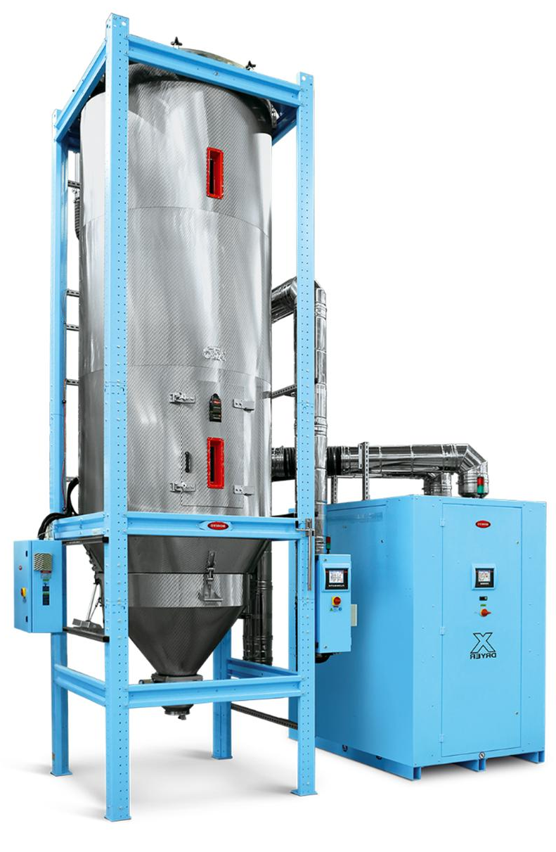 原理:通過分子篩或硅膠吸附空氣中的水分,產生露點溫度≤-40℃的干燥空氣,循環加熱去除原料中的水分。