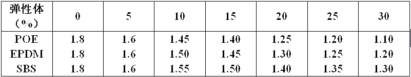 可以添加的彈性體包括POE、EPDM、SBS等,各類彈性體對(duì)塑料收縮率的影響接近,具體見表9。